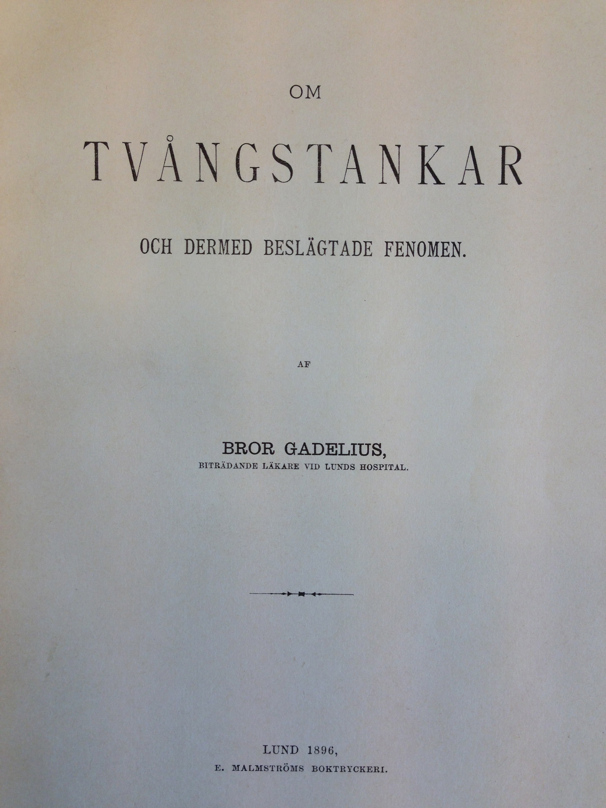 Erik Andersson has been awarded a grant from the Bror Gadelius memorial fund for our D-cycloserine study in OCD. Who was Bror Gadelius? Well, for someone working on a thesis on OCD like Erik Andersson it is interesting to know that Bror Gadelius, once a leading Swedish psychiatrist born in 1862 wrote his thesis on obsessions (Om Tvångstankar och dermed beslägtade fenomen) in 1896. Gadelius became a professor at Karolinska Institutet in 1903 and worked hard to reform mental health care including bringing psychiatric wards to the main hospitals instead of more remote asylums.