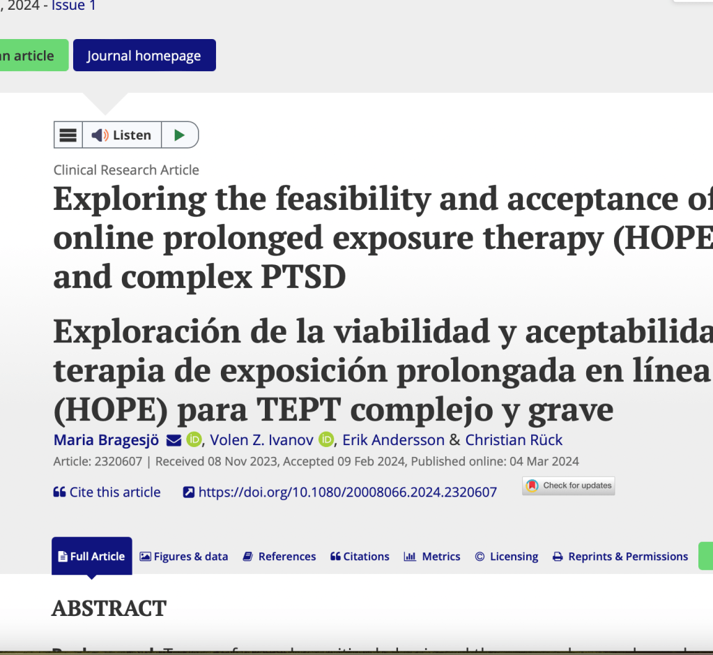 Although trauma-focused cognitive behavioral therapy such as prolonged exposure is considered the first choice in the treatment of post-traumatic stress disorder (PTSD), it is rarely available in regular health care. In a new feasibility trial, Maria Bragesjö et al. test digital therapy (Huddinge Online Prolonged Exposure; HOPE) to bridge this gap.