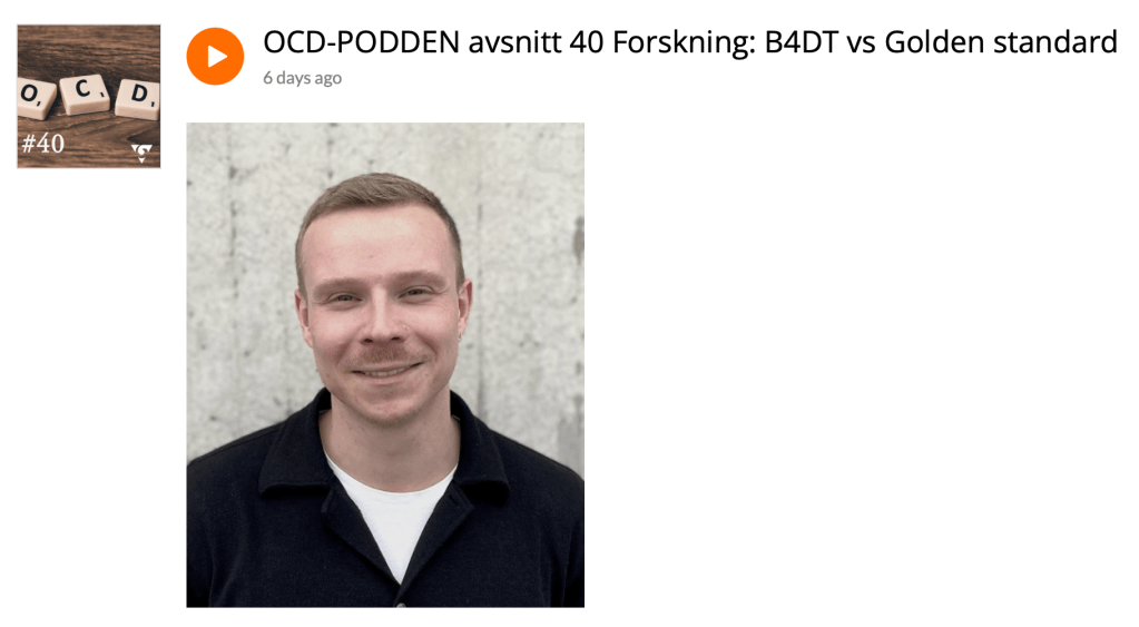Hear Max in the latest episode of OCD-podden talking about the current randomized controlled non-inferiority trial examining Bergen 4-day treatment (B4DT), an intensive treatment compared to gold standard psychological treatment delivered weekly.