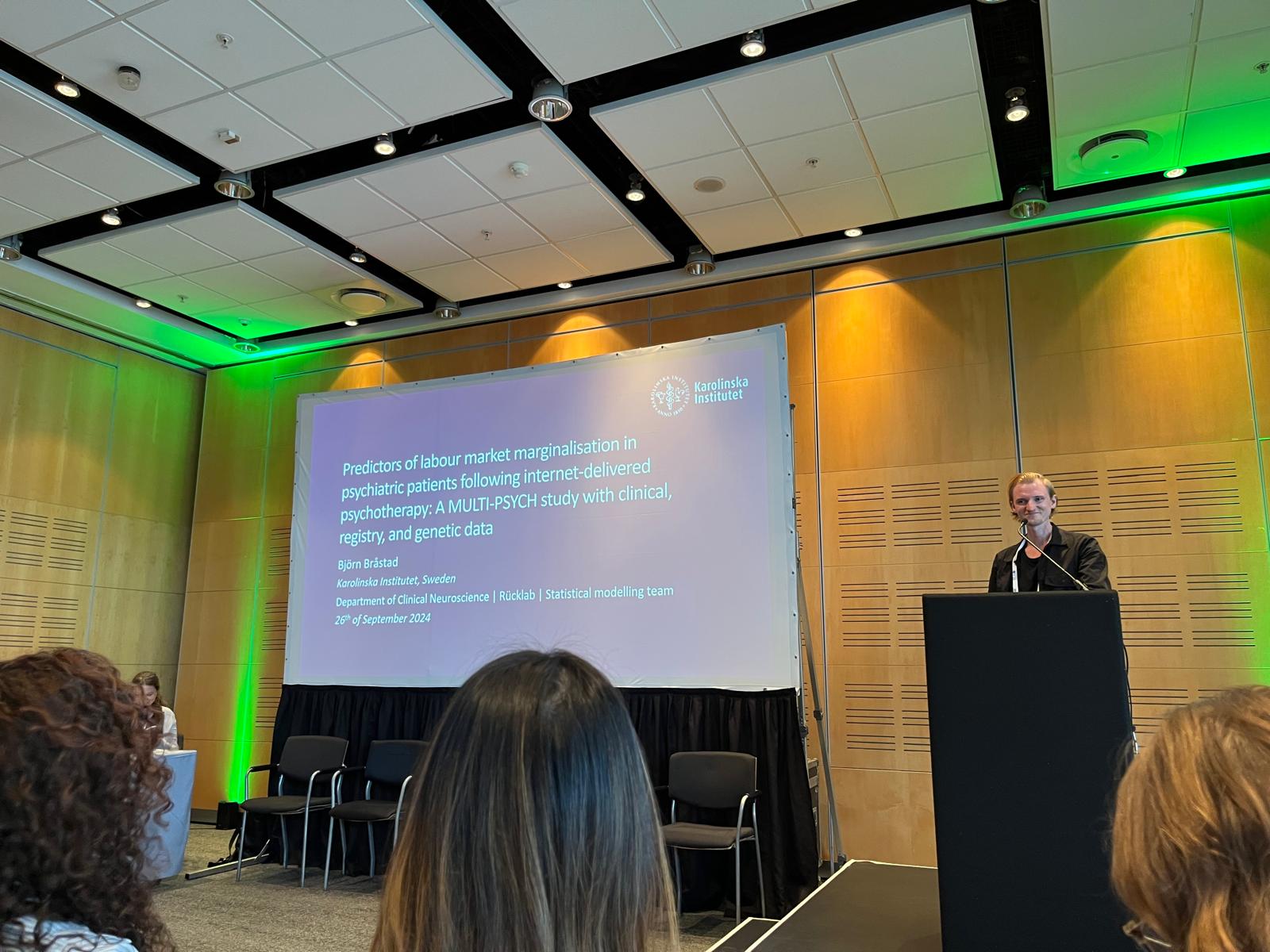 Björn Bråstad presented his work on: ”Predictors of labour market marginalization in psychiatric patients following internet-delivered psychotherapy: a MULTI-PSYCH study with clinical, registry, and genetic data”.